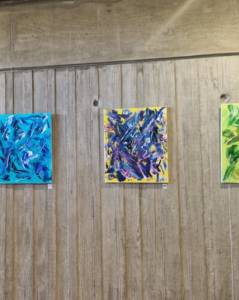 Au fil de ses créations, il explore de nouveaux mélanges et associations, donnant naissance à des compositions uniques. Aujourd’hui, il peint au couteau à l’acrylique sur coton, lin ou carton. Ses 90 toiles exposées rayonnent de couleurs éblouissantes. Aucune n’est identique, mais toutes partagent la même intention : inspirer la joie.