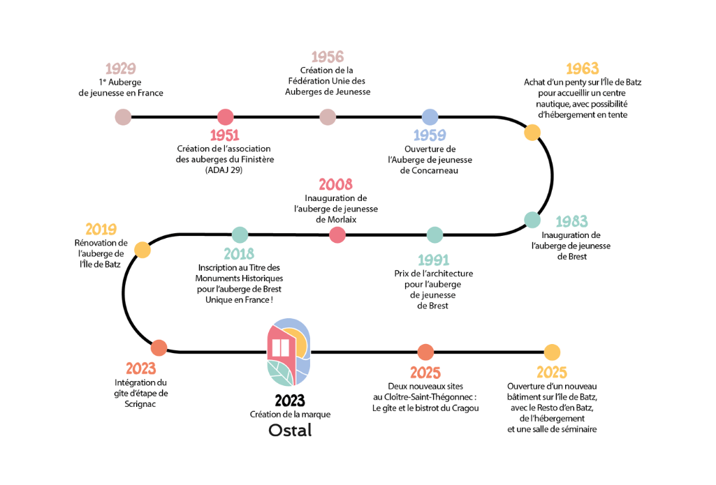En France, c’est le 28 août 1930 que Marc Sangnier ouvre la première auberge de jeunesse. Dans les années 1930-1940, les auberges de jeunesse en France se développent rapidement et le mouvement s’accélère par l’avènement des congés payés en 1936. C’est à la même époque qu’ouvre la première Auberge de jeunesse de Concarneau, de Brest et de Morlaix.
